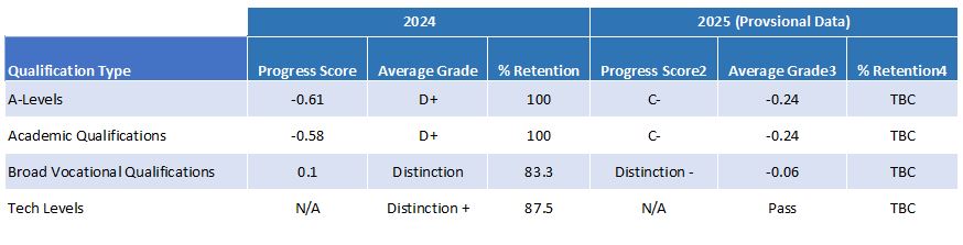 Please find our Sixth Form results below. Please note that data for 2025 is provisional.